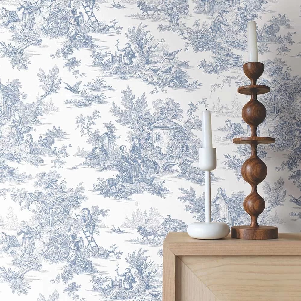 Le Papier Peint Initiales reprend l’élégance intemporelle du motif toile de Jouy pour sa collection Toiles. En effet, Toiles revisite avec raffinement l’un des motifs les plus emblématiques de l’histoire du textile et du papier peint. Inspirée des célèbres toiles de Jouy du XVIIIe siècle, la collection offre une interprétation moderne et variée de ce motif intemporel. Entre tradition et réinterprétations contemporaines, chaque design raconte une histoire et invite à un voyage à travers les époques et les styles.